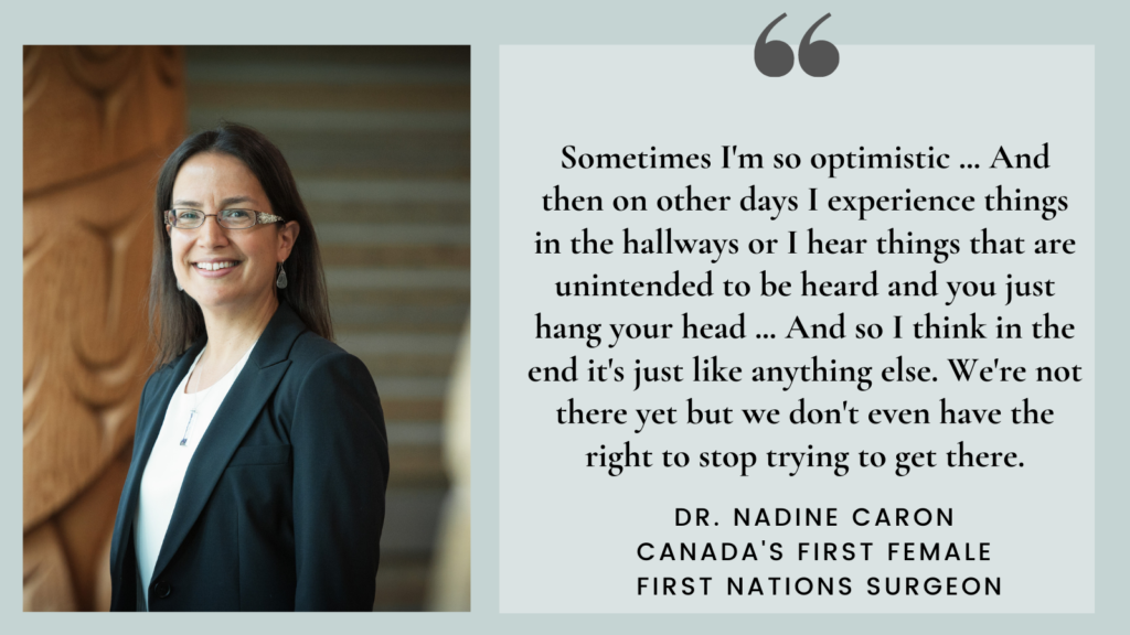 “Sometimes I’m so optimistic … And then on other days I experience things in the hallways or I hear things that are unintended to be heard and you just hang your head … And so I think in the end it’s just like anything else. We’re not there yet but we don’t even have the right to stop trying to get there.”