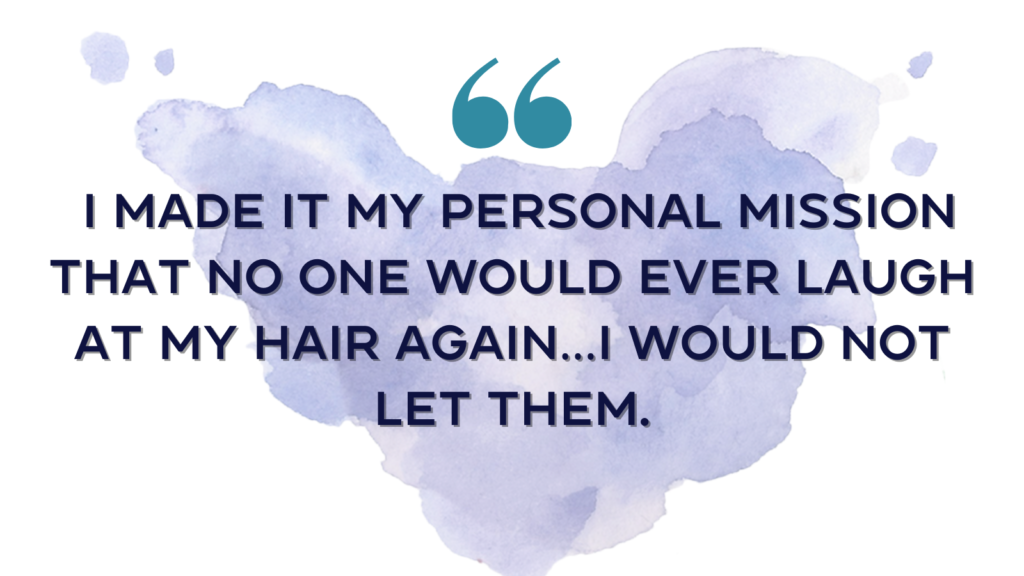 I was, and still am a lover of books, and during the summer, I participated in my local library’s reading program. The reward for reading a certain number of books was a pool party. I remember sitting on the floor with my mother who had spent a few hours braiding my hair for the party. I walked in with neat cornrows, and hours later, left with a wild afro and a bruised ego. I could hear the other children around me, whispering and laughing. At that moment, I felt ashamed of my hair and unwelcome in that space. I hate to admit this, but I also remember looking on the ground for a hair band or scrunchie to tame my wild hair. I never wanted to go through that experience again; therefore: